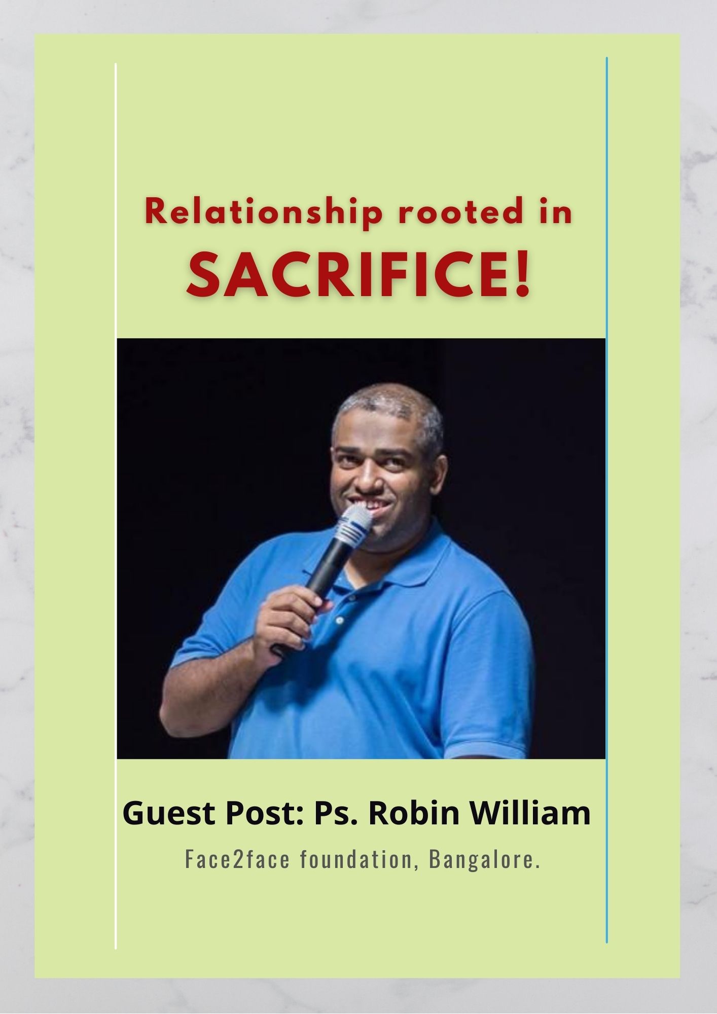 It’s a joy and privilege to have Ps. Robin William from Face2Face Bangalore to write a guest post for us. Please take time to read, comment, and share this with your loved ones.